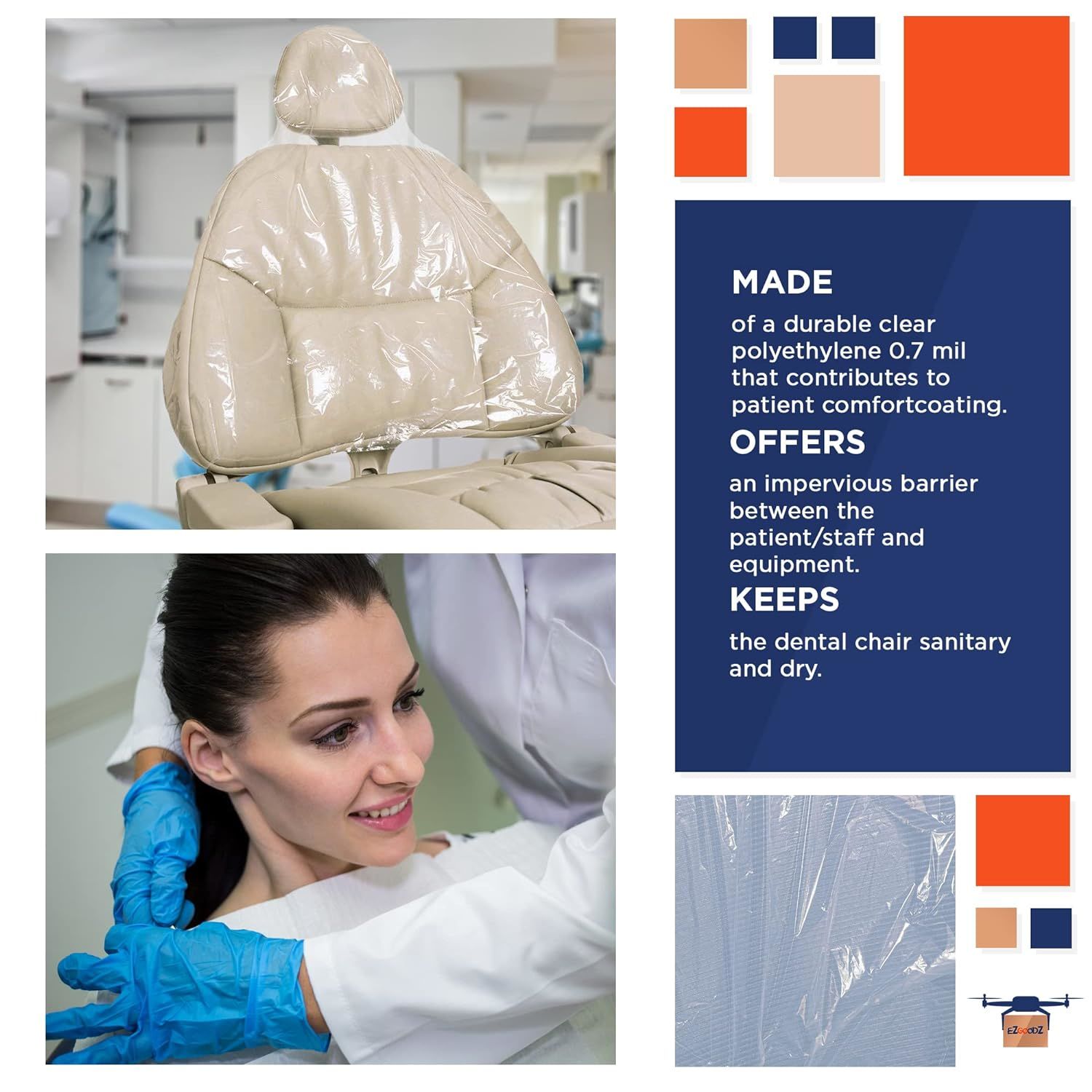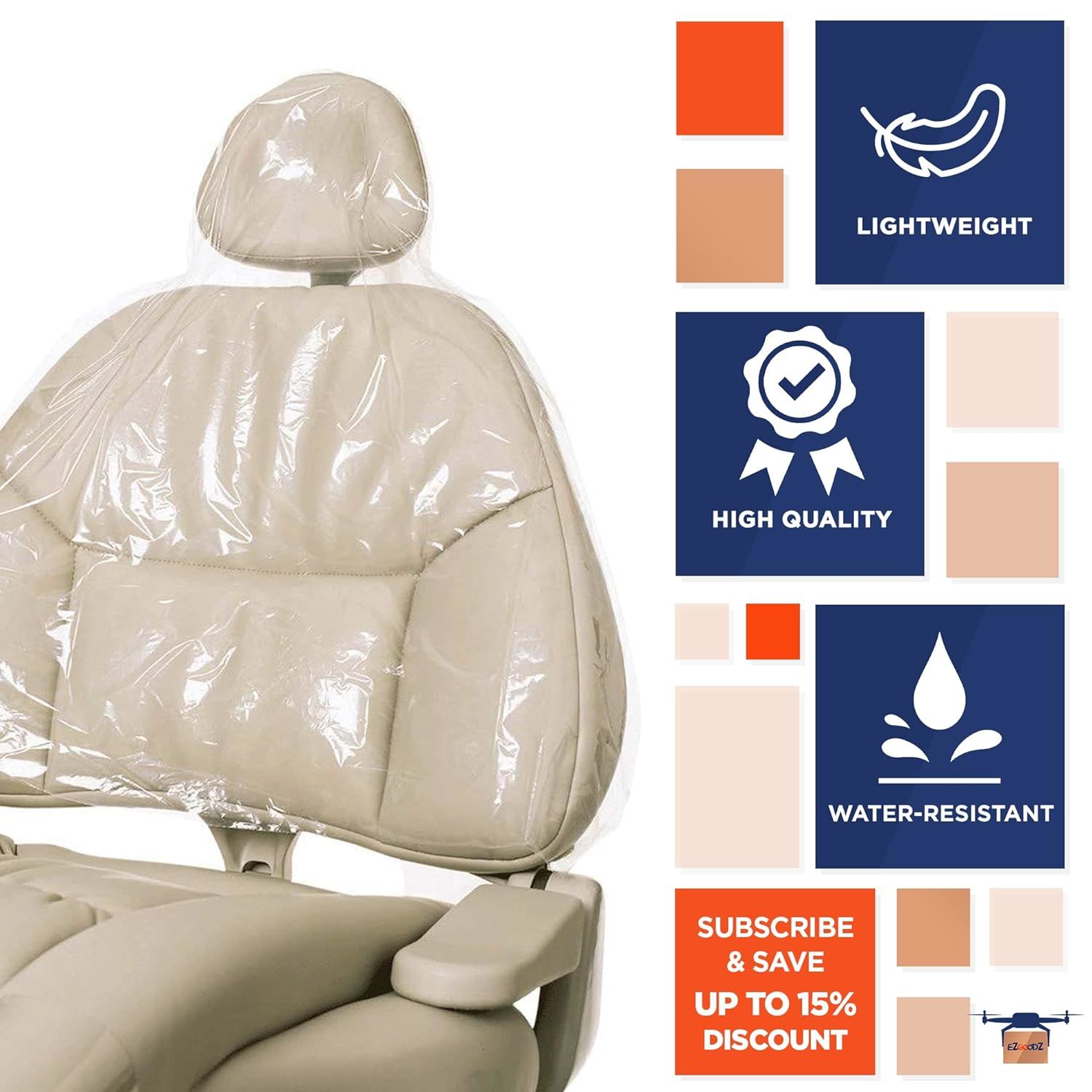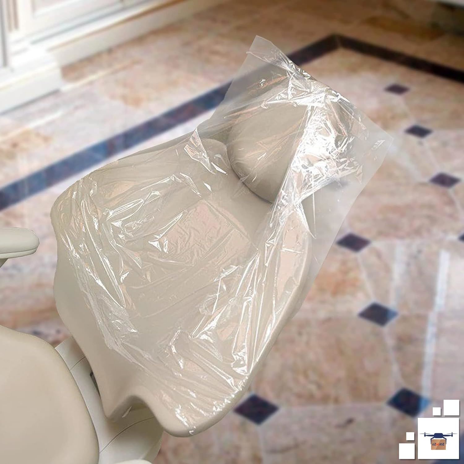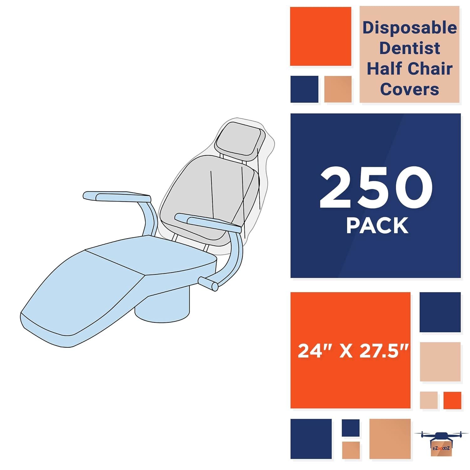 一次性牙醫半椅套; 24 英吋 x 27.5 英吋。 250 個裝防水塑膠紋身和牙科 1/2 椅子保護墊。專業聚乙烯 070 萬靠背覆蓋物;頭枕;袖子。